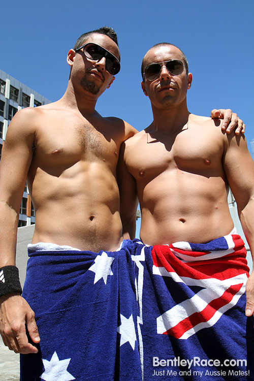 I love public holidays and I especially love Australia Day. Marco and Diego posed for me on the roof a few days ago to help me set up for this special Australia Day shoot. It really is the perfect summer day to get naked outdoors. I’m sure my neighbours would have appreciated the view too!