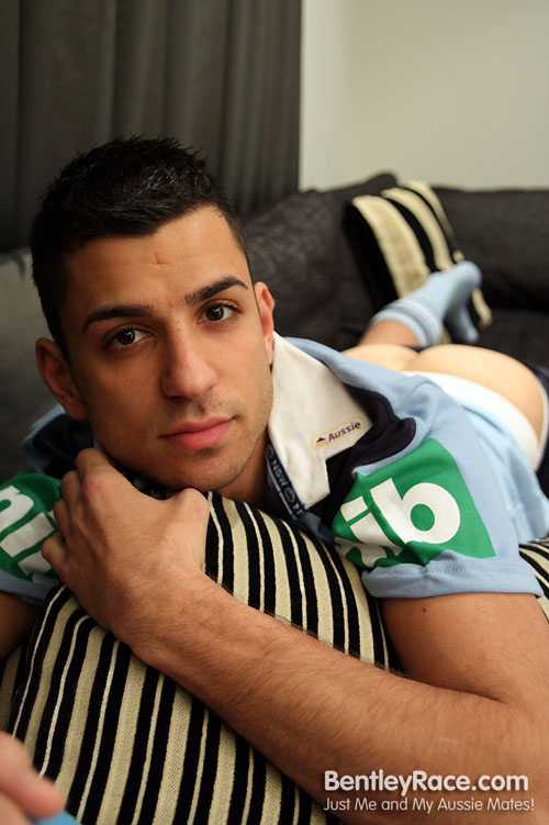 Meet the newest star on BentleyRace. Shaun Michael! I had the pleasure of meeting and shooting with Shaun when I was visiting Sydney recently. Shaun loves sports gear and had no problem showing off for me on the top of this parking garage in the Sydney CBD. I’m sure the neighbour apartment and office towers got a great view too! Shaun looks so dam hot in his wrestling tank… but just wait till you see him out of it!