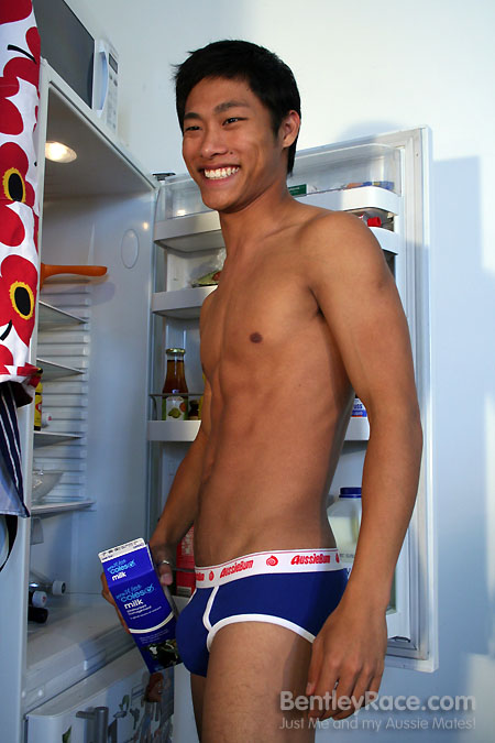 This is one of my favourite shoots. Jase in my kitchen in a pair of jocks… strips naked, and pours the milk all over himself on my kitchen floor. This big dicked stud has appeared several times on the site giving us some great shows! His action videos are the best!